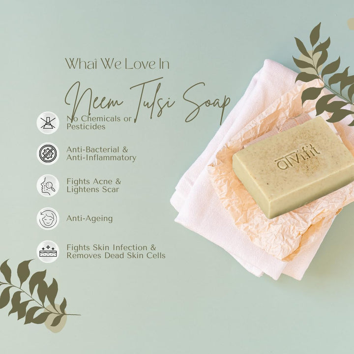 Atvi.fit Neem tulsi soap Anti-bacterial & Anti-inflammatory soap enriched with clove oil, tulsi (sacred basil) oil, dried neem and tulsi powder (Pack of 2)